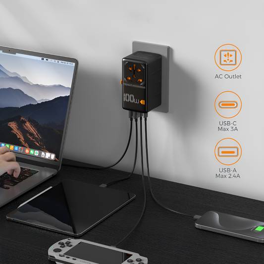 100W Universal Travel Adapter – Compact, Worldwide Charging