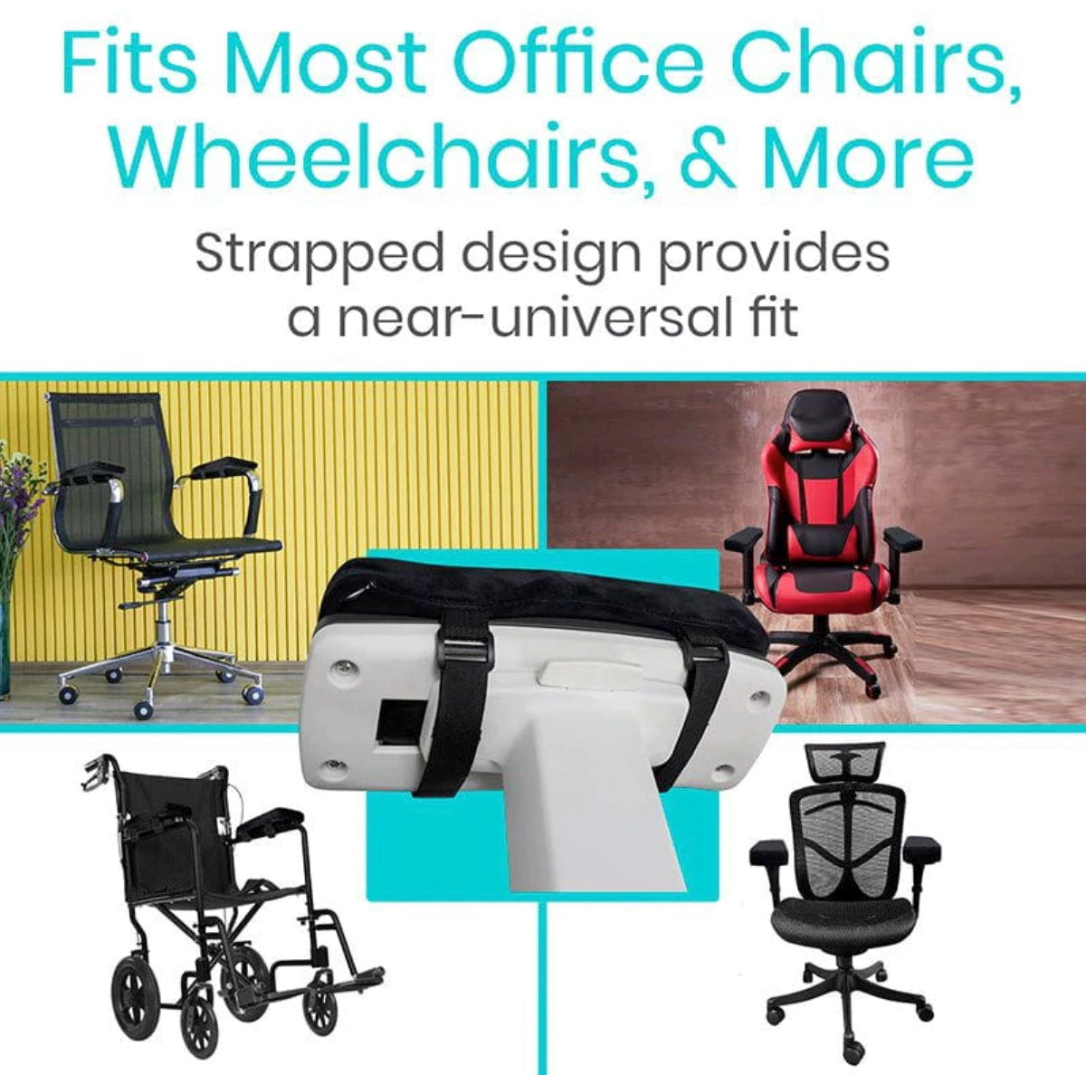 Crafted from 1.5” thick contouring memory foam, our armrest pads cradle your elbows and wrists, relieving painful pressure and reducing fatigue in your arms and shoulders. Ideal for office and gaming chairs, these soft, supportive cushions ensure you can work or play longer without discomfort. Attach them easily to your favorite chair and feel the difference immediately!
