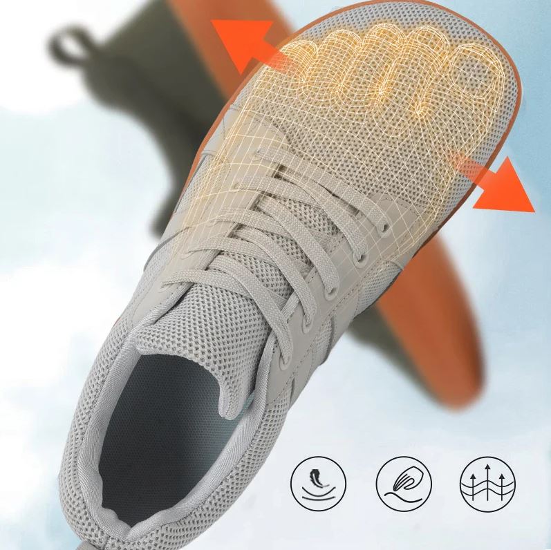 Experience the benefits of a more natural stride with our Barefoot Shoe Sneakers. The roomy toe boxes and flexible soles promote midfoot or forefoot strikes, reducing injury risk and enhancing running efficiency. Minimal cushioning helps build strength in your foot and lower leg muscles, improving balance and overall foot health. Feel more connected to the ground with every step, and enjoy the lightweight, breathable mesh that mimics the sensation of walking barefoot without sacrificing protection.