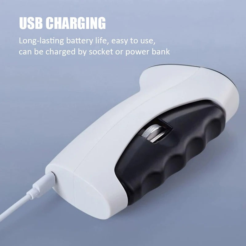 The device is powered by a rechargeable battery, ensuring convenience and sustainability.