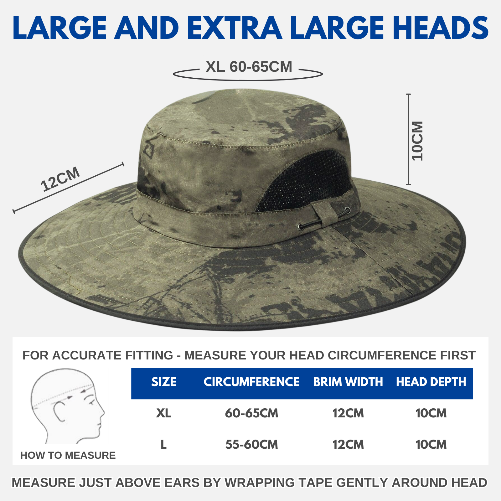 Stay cool, comfortable, and fully protected under the sun with our Extra Wide Brim Sun Hat for Big Heads – UV Protection. Specially designed for larger head sizes, this UPF50+ sun hat shields your face, ears, and neck from harmful UV rays while offering a secure, comfortable fit for all-day wear. Whether you’re hiking mountain trails, fishing by the lake, or tending your garden, it’s built for those who need both size-specific comfort and superior protection.