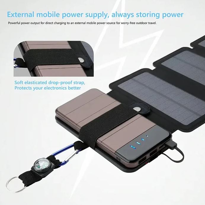 Our portable solar charger features a high-quality monocrystalline silicon chip that converts up to 85% of solar energy into electricity, ensuring you have power whenever you need it. The ultra-thin, foldable design with eyeholes allows you to easily clip it to your backpack with carabiners or ropes, making it highly portable and convenient. Plus, with an IPX4 waterproof rating, it's resistant to dust and water splashes, perfect for rugged outdoor use.