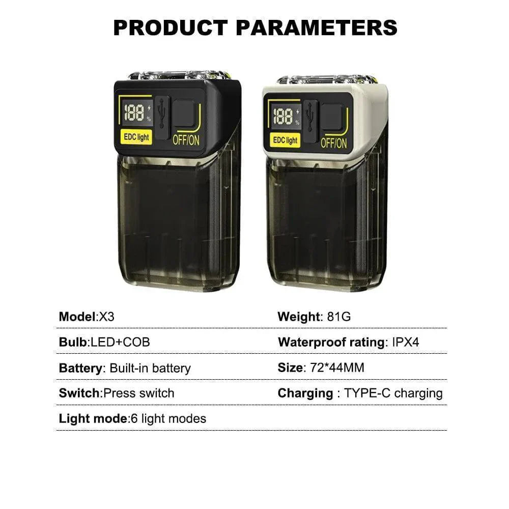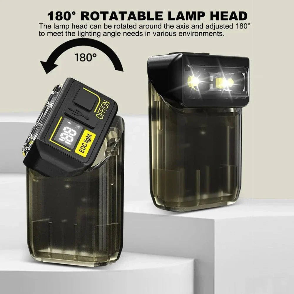 Whether you are camping, hiking or simply need a reliable light source, this mini flashlight is your ideal companion. Thanks to its lightweight and compact design, it fits easily in your pocket, on your key ring or backpack. The handy clip allows you to work hands-free, and the digital battery display ensures that you always know how much energy you have left.
