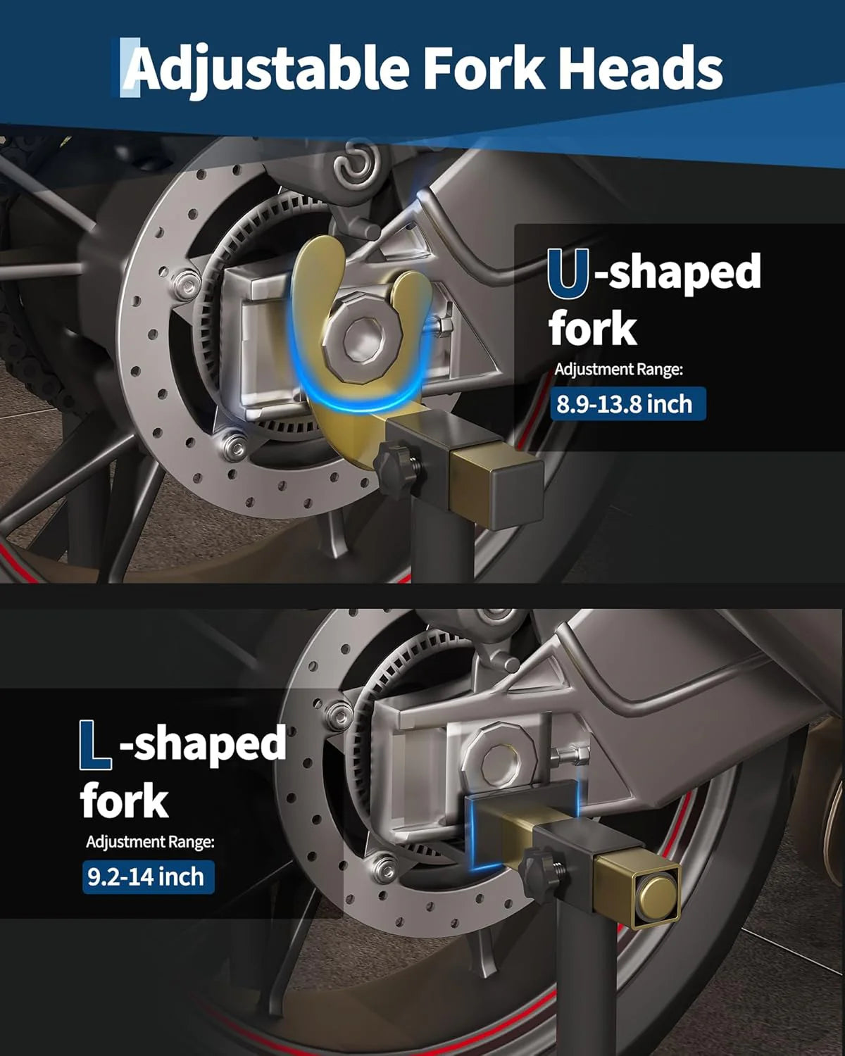 Yes. With adjustable fork heads and rear adapters, it fits most motorcycles, including sportbikes, touring bikes, and standard models. Always check your bike measurements against the adjustable range for best fit.