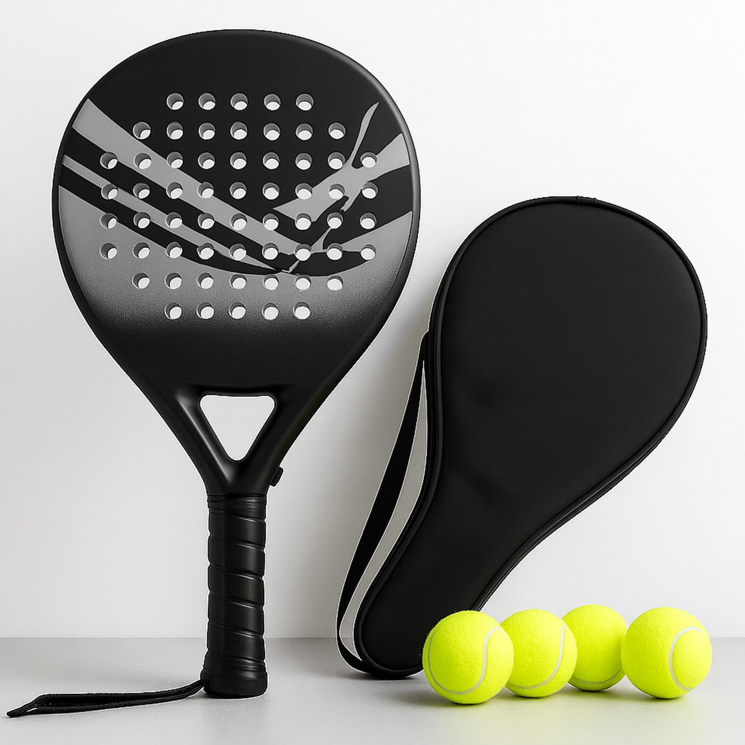 - Complete Padel Kit – Includes carbon-reinforced racket, padded protective case, and 4x pressurized balls.