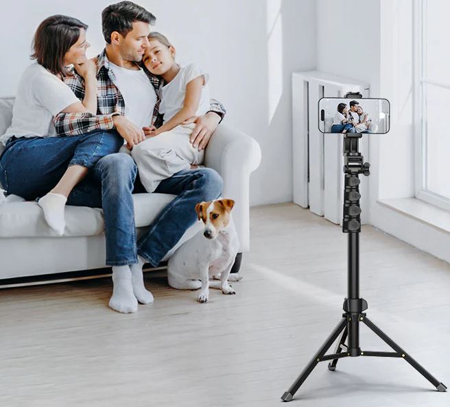 Say goodbye to shaky hands and awkward angles. The Portable Tripod Mount Stand extends from 17" to 64" and features a 210-degree rotating head and a 360-degree holder, giving you complete control over your shots. Its sturdy construction ensures your camera or phone stays secure, while the Bluetooth remote allows for seamless, hands-free operation. Capture breathtaking landscapes, group photos, and everything in between with professional-level precision.
