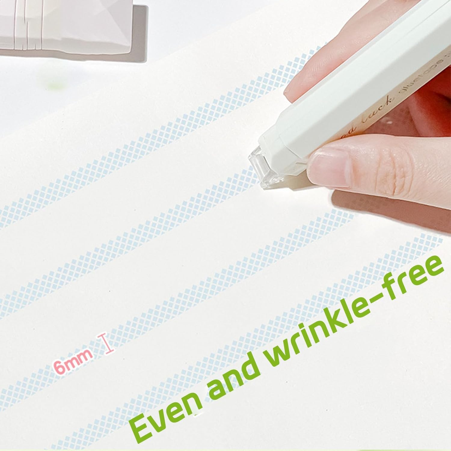 Designed for crafters and organizers alike, this tape is perfect for attaching lace, photos, paper, and even thin wood chips. Its compact, portable design fits easily in a pencil case or bag, so creativity can strike anytime, anywhere. With a simple push-and-slide mechanism, you get a perfect line of tape every time, ready for strong, long-lasting adhesion.